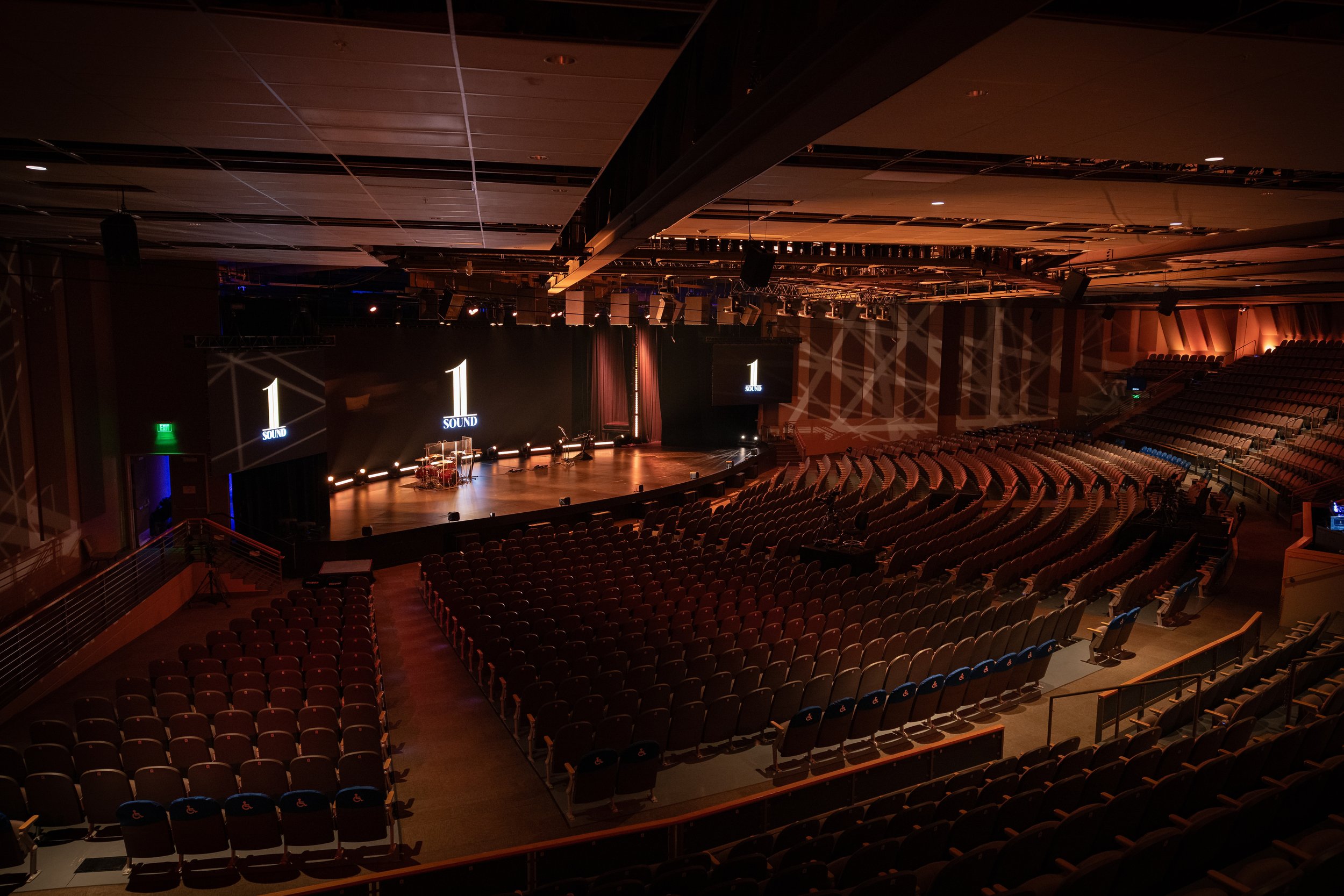 “A secondary concern was an odd low-end build-up in our space that was apparent in the previous system. This deployment with the SUB2112s really helped us control that and keep the coverage where it needed to go and not excite parts of the room,” said Peddycoart. Utilizing multiple Contour point sources allowed Sagebrush to achieve even coverage throughout the space while keeping the stage and screens unobstructed.