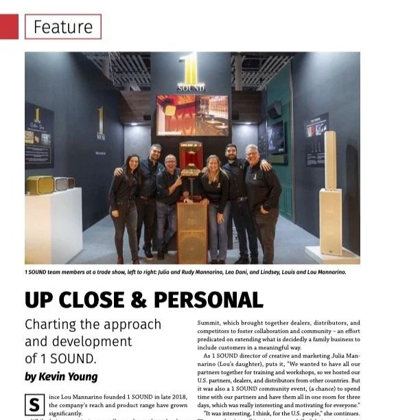 Deep-dive feature on 1 SOUND's founding, family-business structure, innovation philosophy, and customer-centric approach.