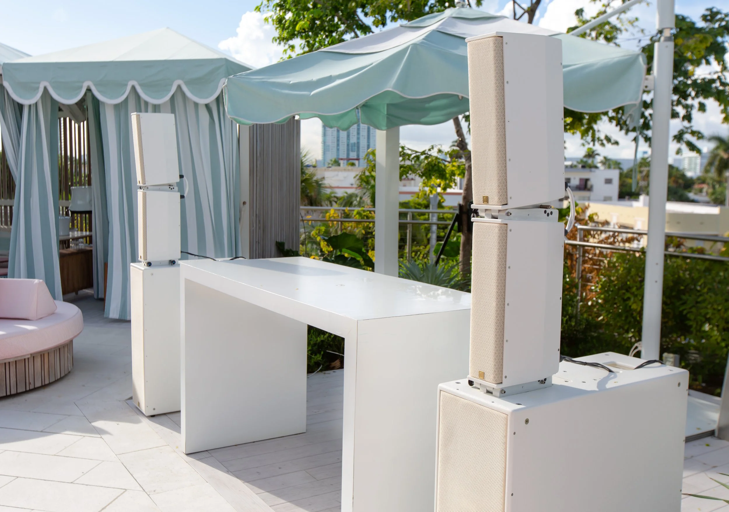 Accessories: Sub Pole Cup, Active Speaker Tubes, Tower Rigging System, Subwoofer Outrigger Set, removable rubber feet [included]