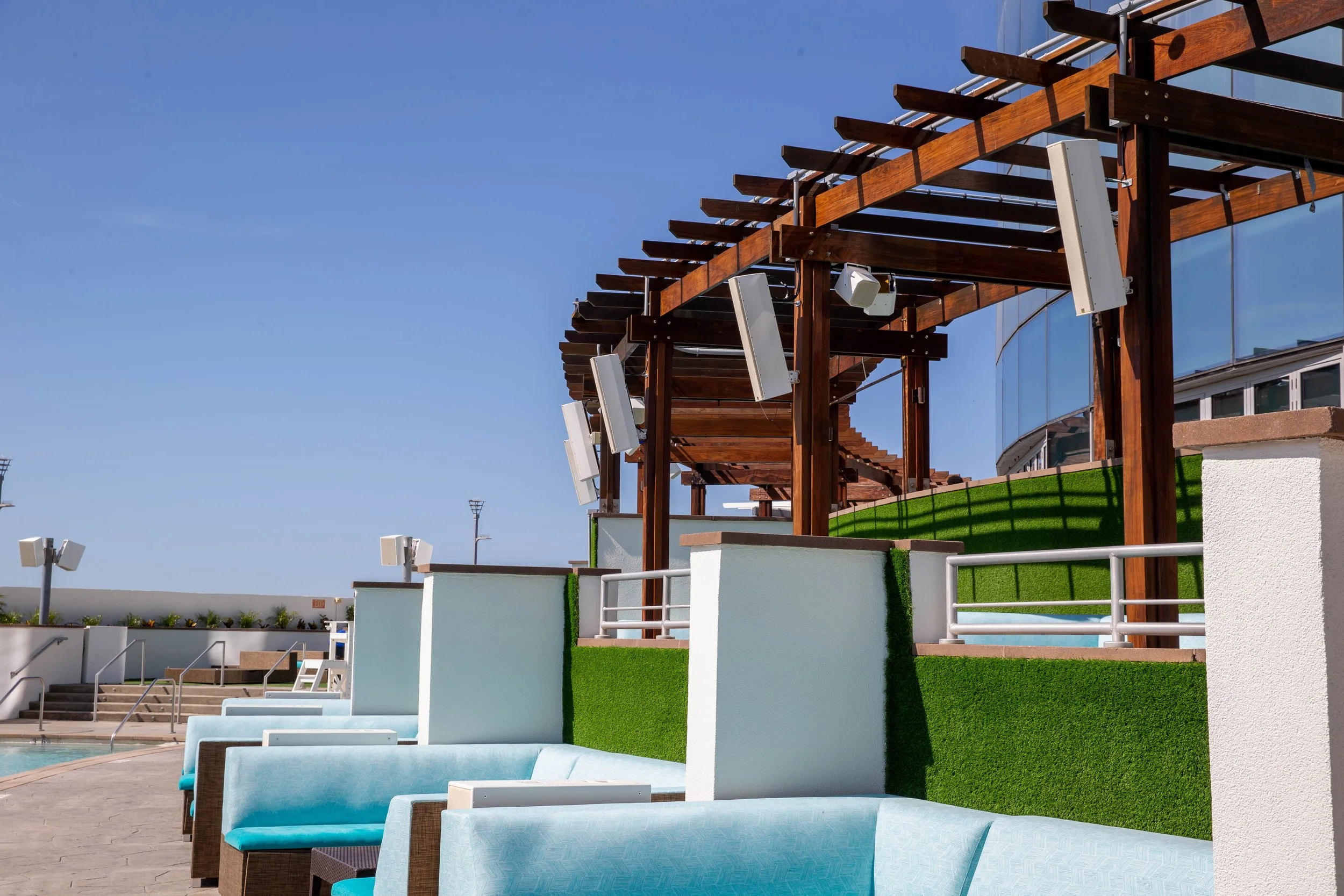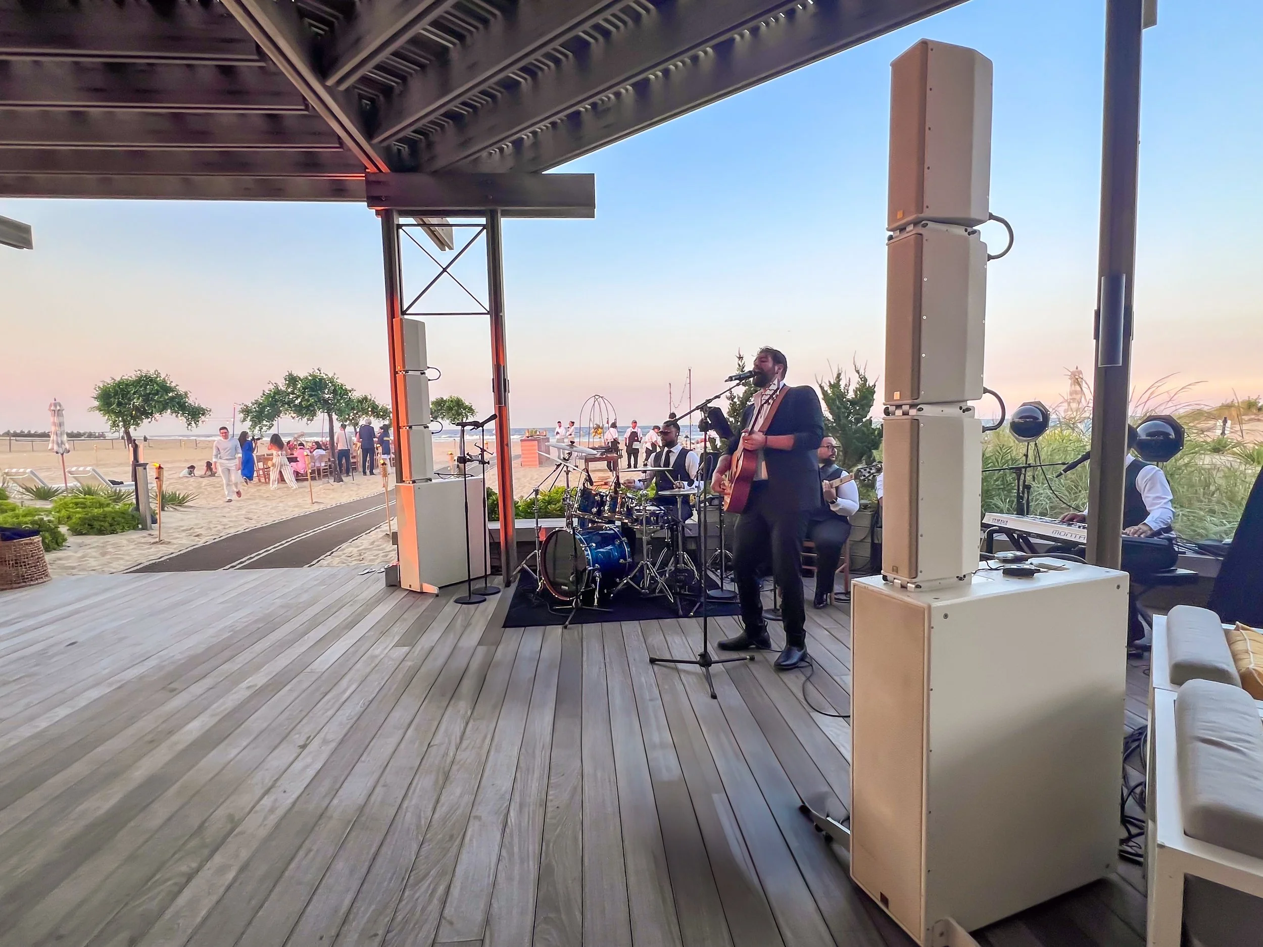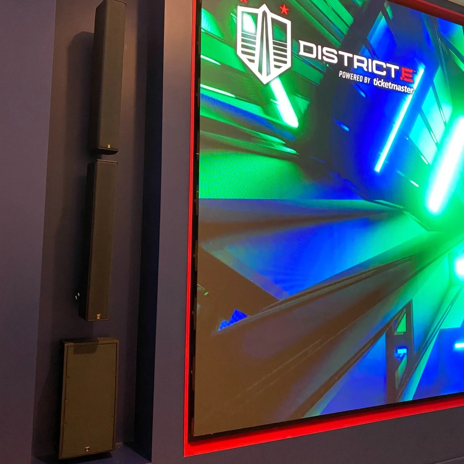 (3) 10” drivers are stacked to create a line source for extra throw