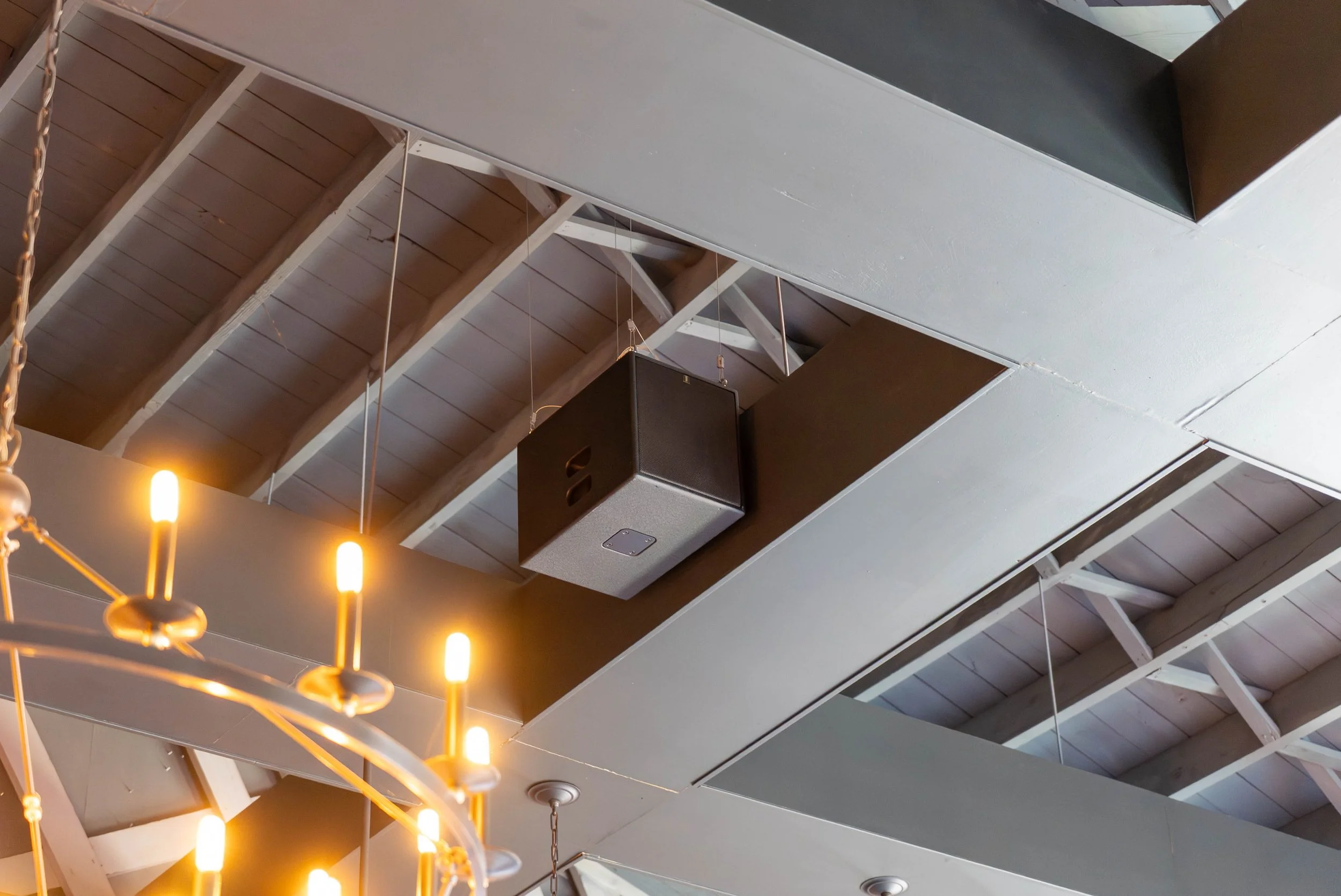 The SUB28 (the Banquette Sub) stand only 8” tall allowing it to be positioned underneath, inside, or in between furniture. Eight M8 rigging points – four on each of two sides – and an optional hanging kit allow this sub to be flown in two different orientations, either parallel to a wall or to a ceiling. Recessed input and link output connectors on two of the corners permit clean cable management, no matter how the enclosure is positioned.